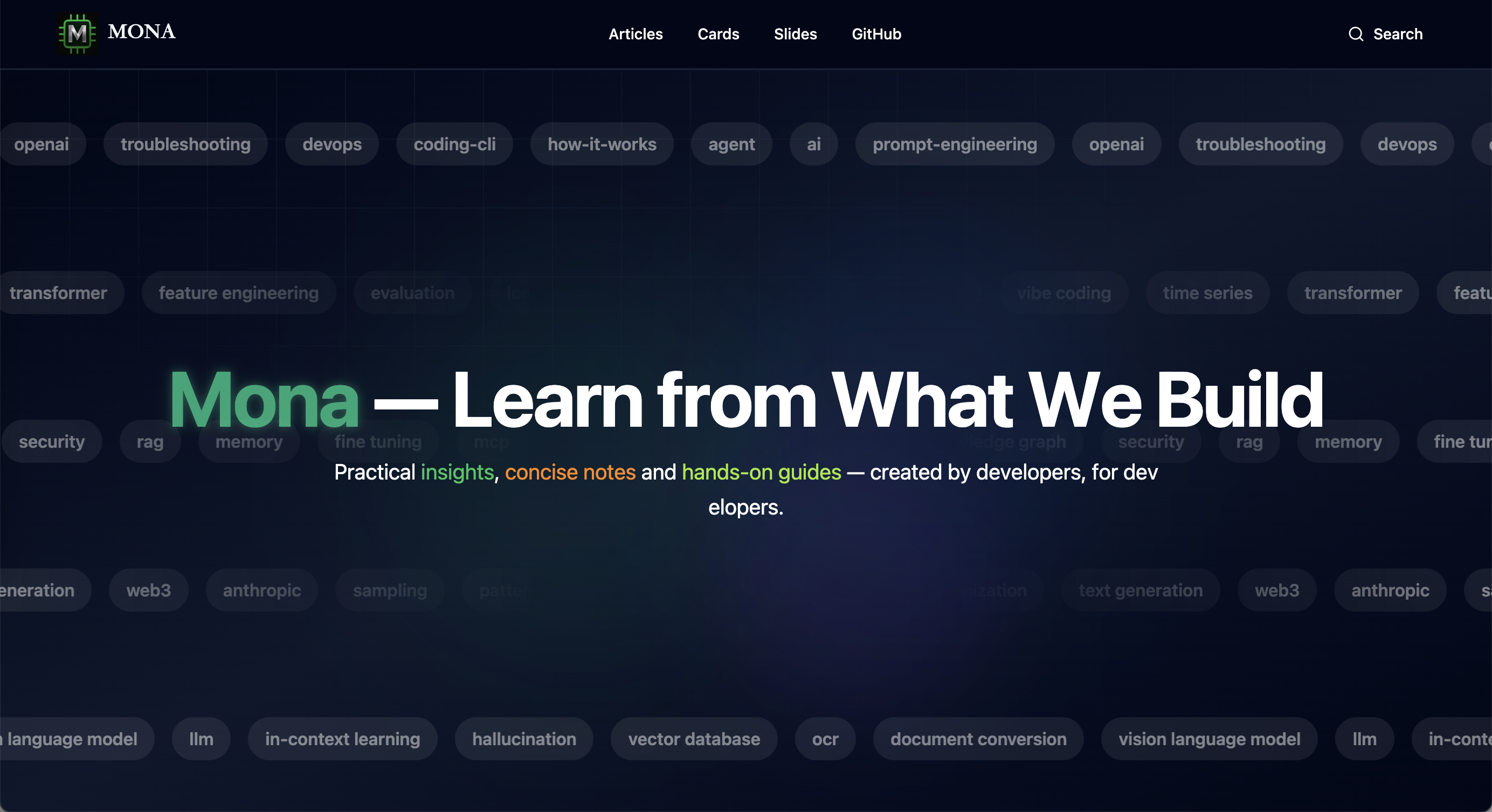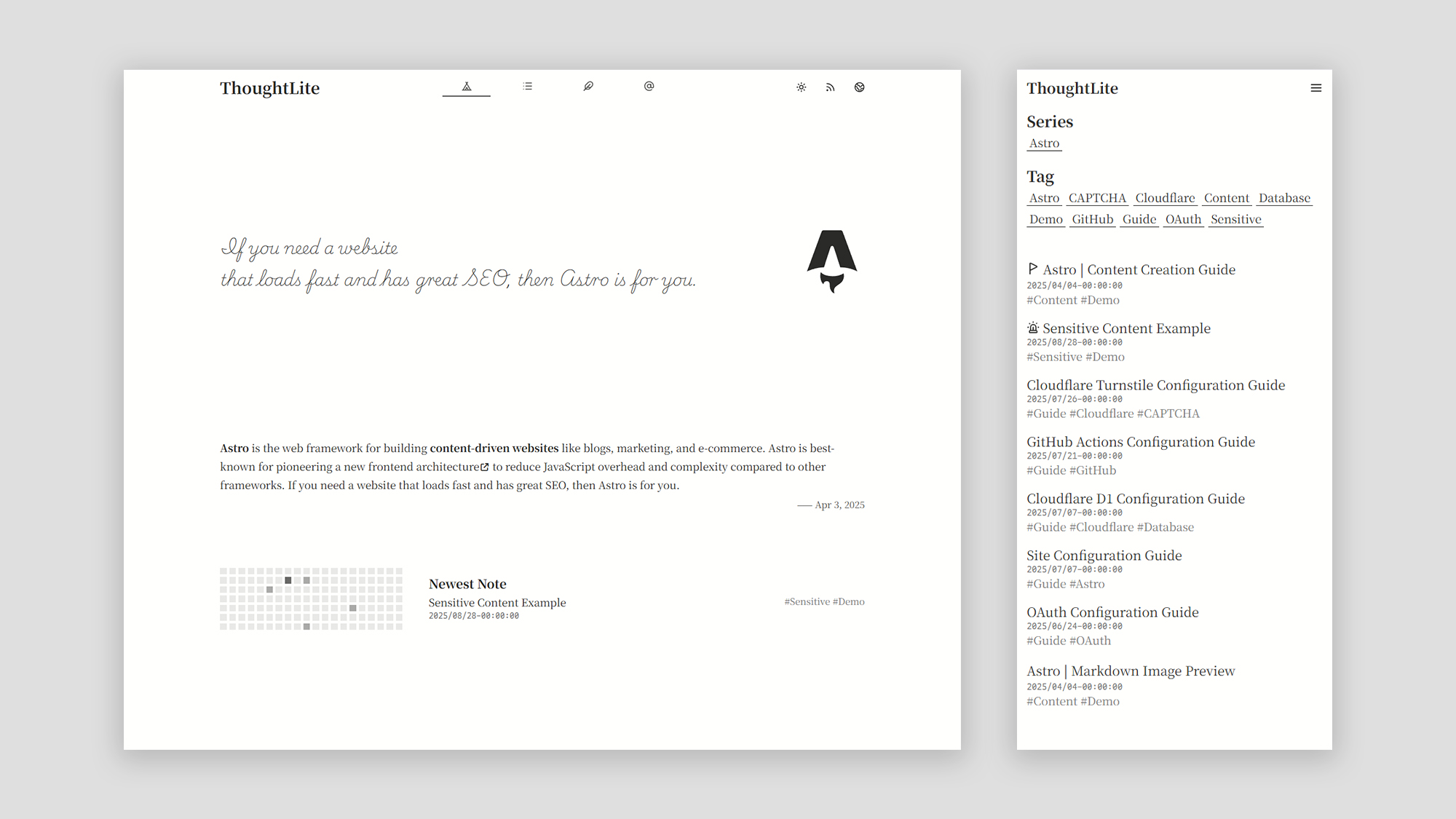 An Astro theme featuring multi-format content including knowledge cards, articles, and slide presentations.